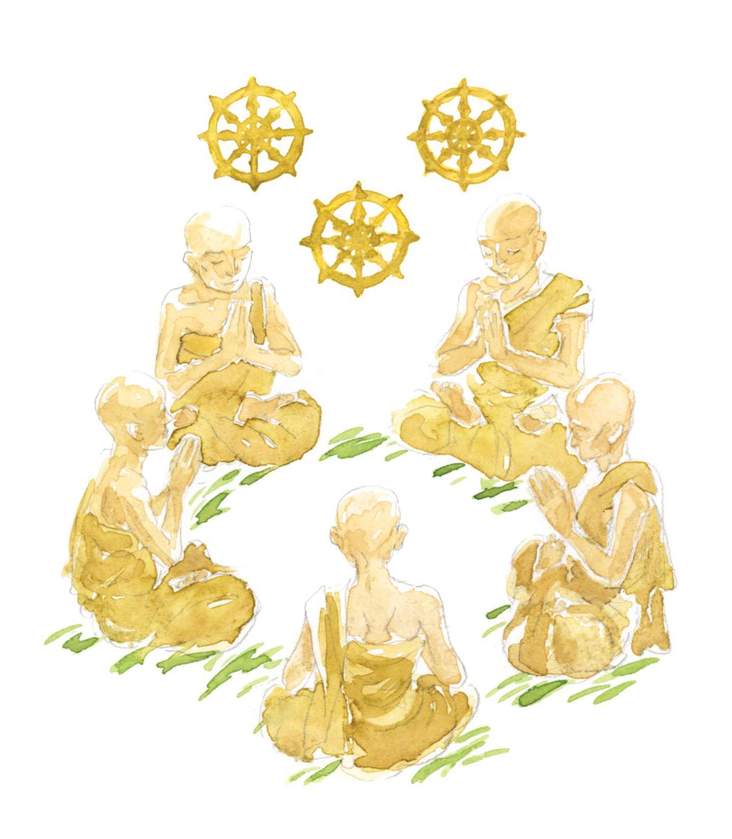 お釈迦さまが説かれた最初の御説法によって、五人の比丘の心は、清らかで、大きな喜びに満たされました。