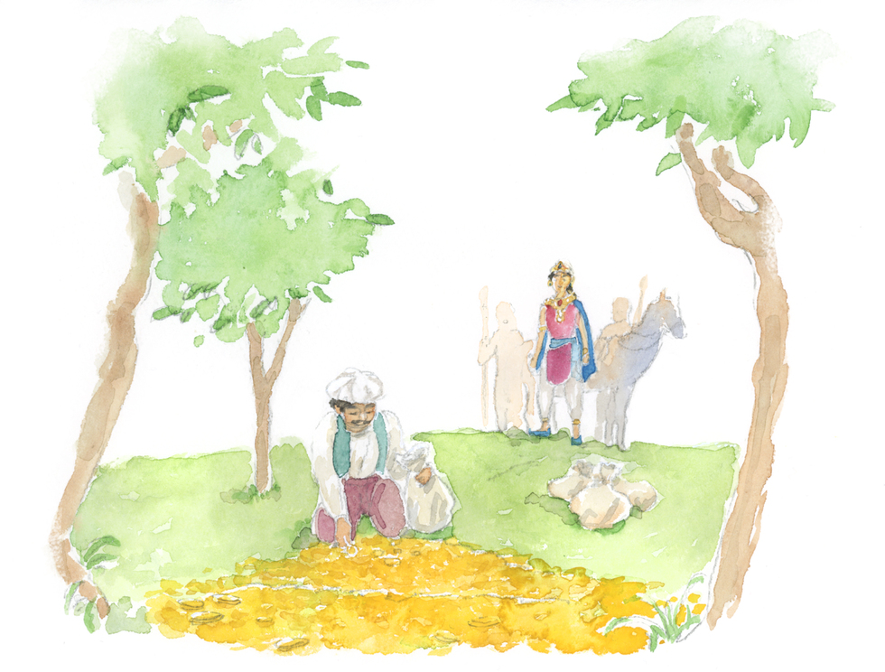 スダッタは、在家信徒となった後、コーサラ国に、お釈迦さまの教団を迎えるための精舎を建てようとしました。