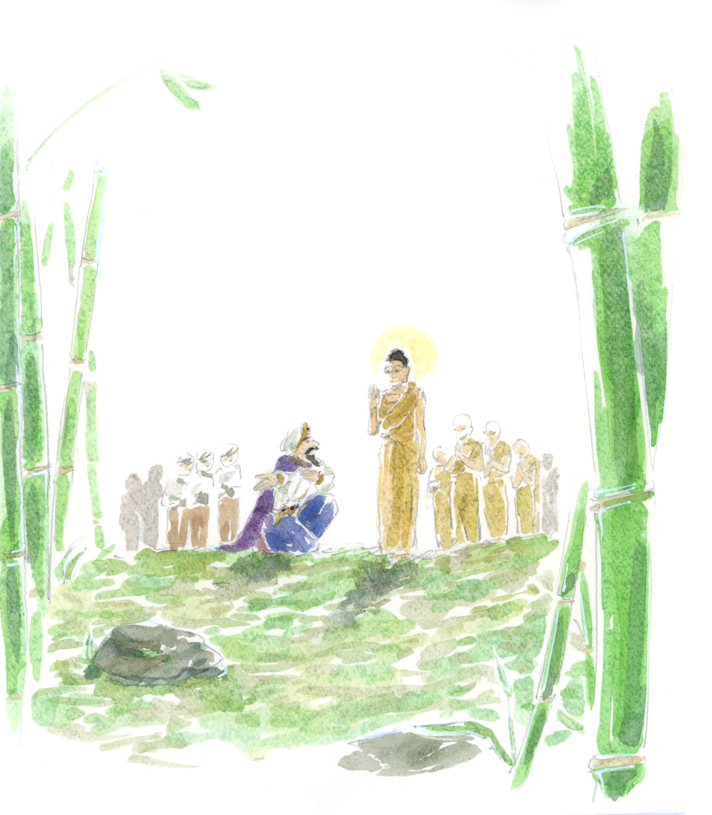 お釈迦さまは、その後、何度も竹林精舎で御説法をされ、ビンビサーラ王が願った通り、多くの人々に、お釈迦さまの教えが弘まっていったのです。